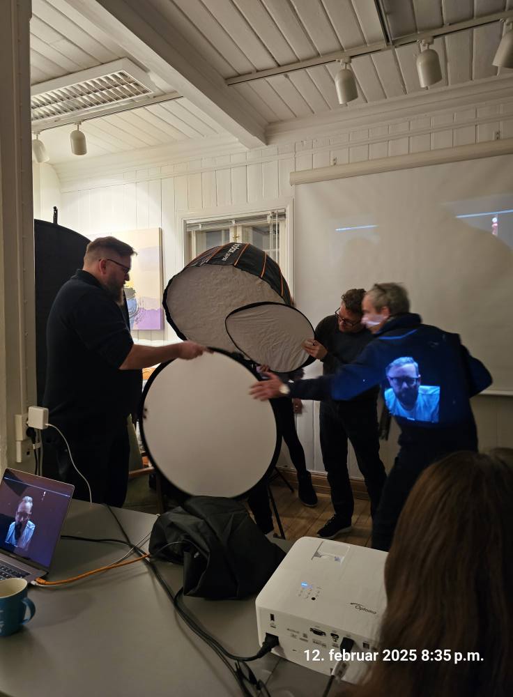 Ken Åge loste oss igjennom hvordan han jobbet og forklarte på en fin og forståelig måte oppsettet, forberedelser og selve fotograferingen. På slutten ble det en del eksperimentering med «pakke inn» lyset med reflektorer, det er lett å bli engasjert.